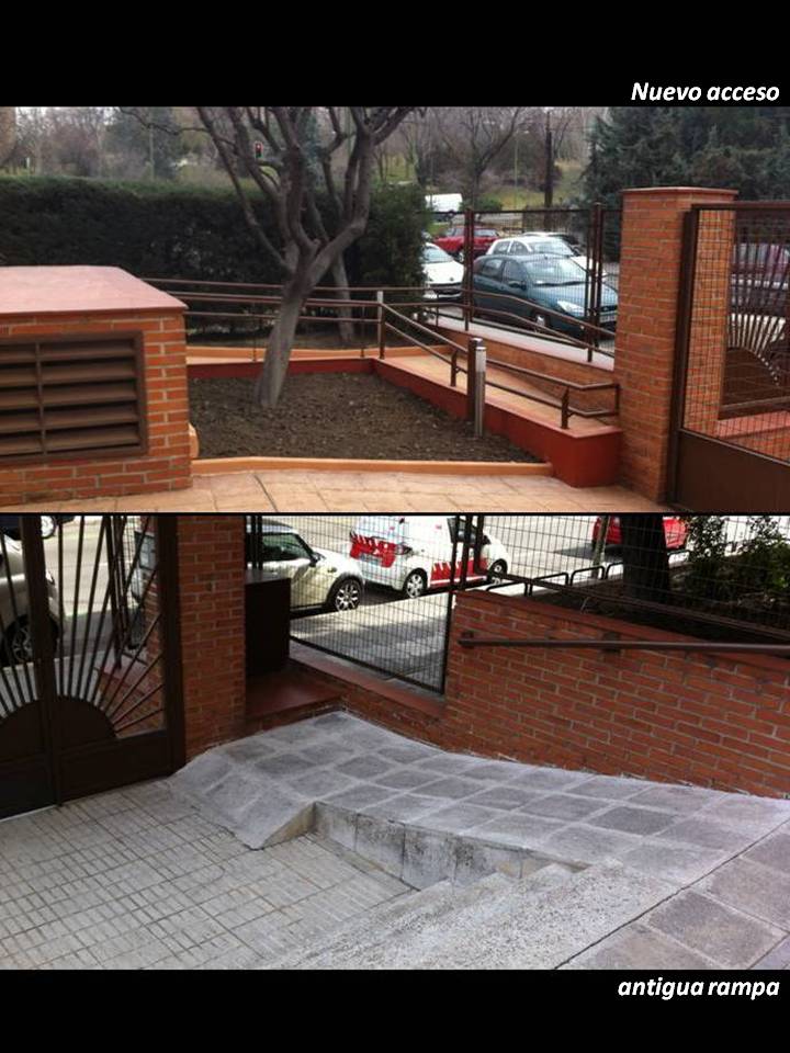 Los vecinos de una comunidad de vecinos de la calle Puentecesures, tenían un acceso que no se ajustaba a las necesidades de accesibilidad y seguridad requeridas. Pero eso ya es historia porque desde hace unas semanas pudimos habilitar, aprovechando un extremo de las zonas ajardinadas, para la construcción de una nueva entrada accesible, no sólo para usuarios de silla de ruedas, sino para vecinos con carrito de bebé, que vienen cargados con la compra... Las pendientes, pasamanos, dimensiones, iluminación... lo convierten en un itinerario comodísimo y seguro. Aquí os dejamos unas imágenes de cómo quedó la obra y un recordatorio de cómo estaba antes.